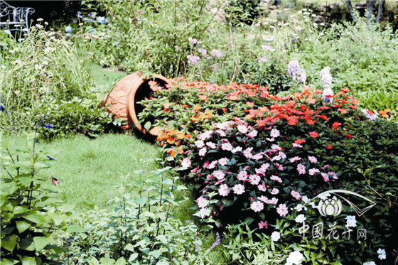 陶罐花溪景觀 以冰生溲疏為背景,通過(guò)陶罐的配置,組合搭配超級(jí)鳳仙‘桑蓓斯’、天竺葵、紫嬌花、粉花繡線菊、紅花鼠尾草、姬小菊、九頭獅子草、大花飛燕草等,形成以紅色調(diào)為主的陶罐花溪景觀。遠(yuǎn)遠(yuǎn)望去,仿佛一道絢麗的花海從陶罐中傾瀉而出,汩汩地流向遠(yuǎn)方。
